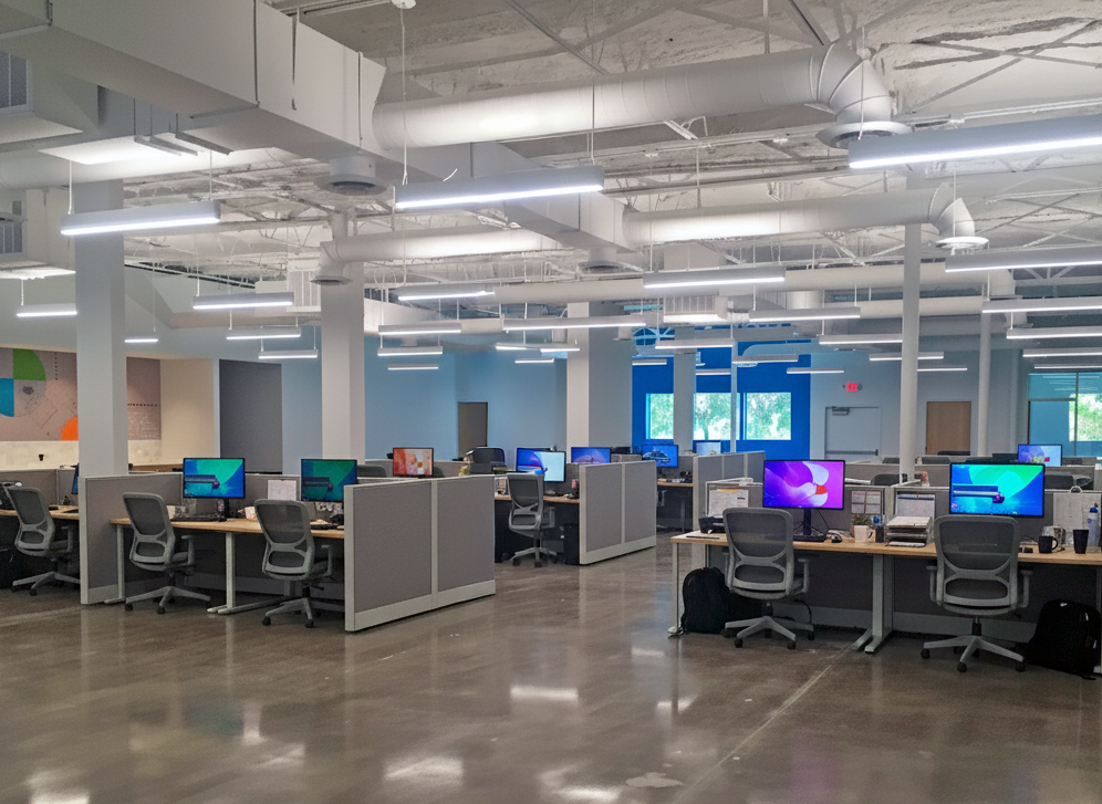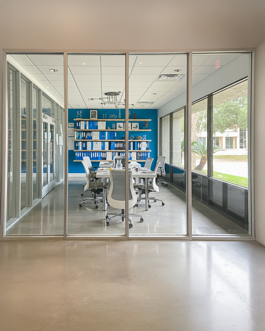 This commercial interior build-out project involved the transformation of an existing medical facility structure in Dickinson, Texas, into a modern office and engineering facility. The architectural scope centered on a comprehensive interior remodel that maximized the utility of the existing building footprint without altering its external boundaries. Key features of the new layout include a central lobby and common area, a large conference room with a dedicated coffee bar, various private offices, specialized call rooms, and a staff break room.