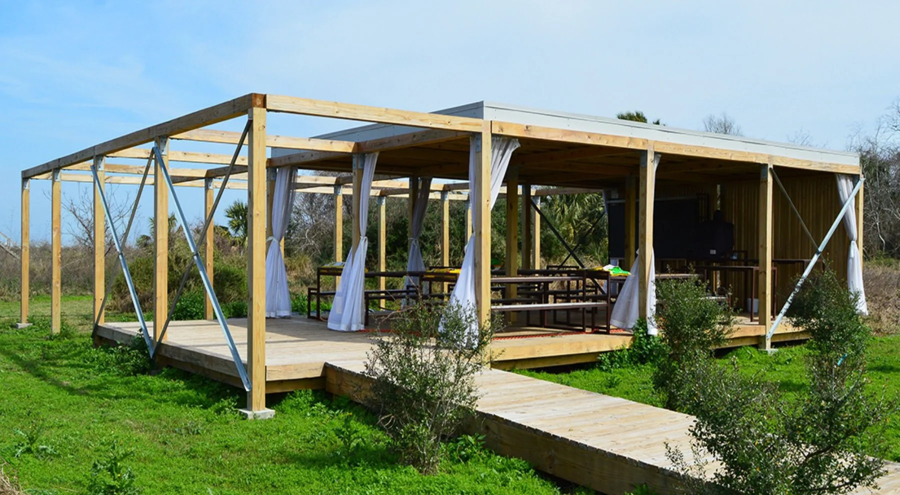 UT Austin’s Gulf Coast DesignLab partnered with Galveston’s collective non-profit Artist Boat to design and build multiple pavilions over the course of three semesters, each with a specific function. The STORE and FRAME pavilions are both for curated use such as storing kayaking equipment and as a gathering area for visitors to share their experiences. The OBSERVE pavilion, which is open to the public, offers a shaded area for visitors to view migratory birds within the marsh.